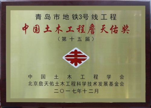 公司參建的青島地鐵3號線獲第十五屆中國土木工程詹天佑獎